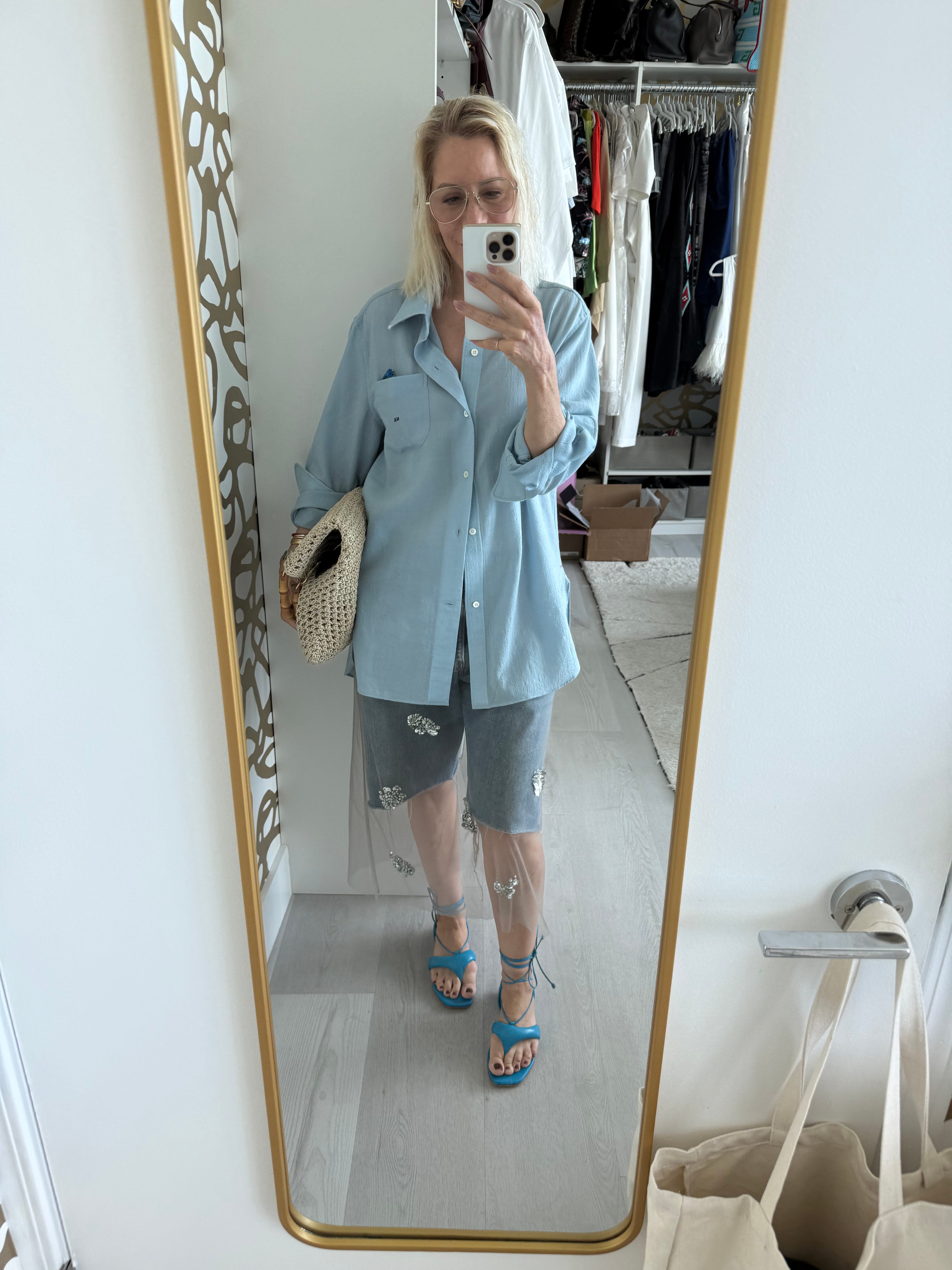 I am OBSESSED with this Maison Margiela shirt (this is a lightweight wool and very comfortable) I like this style, also avail in a cotton oxford, good selection for you of chambray + denim