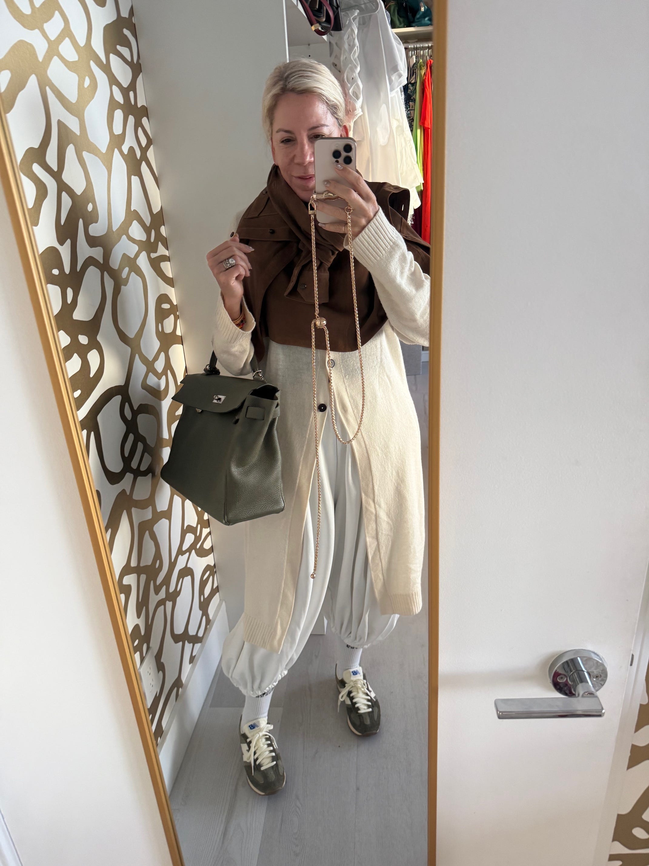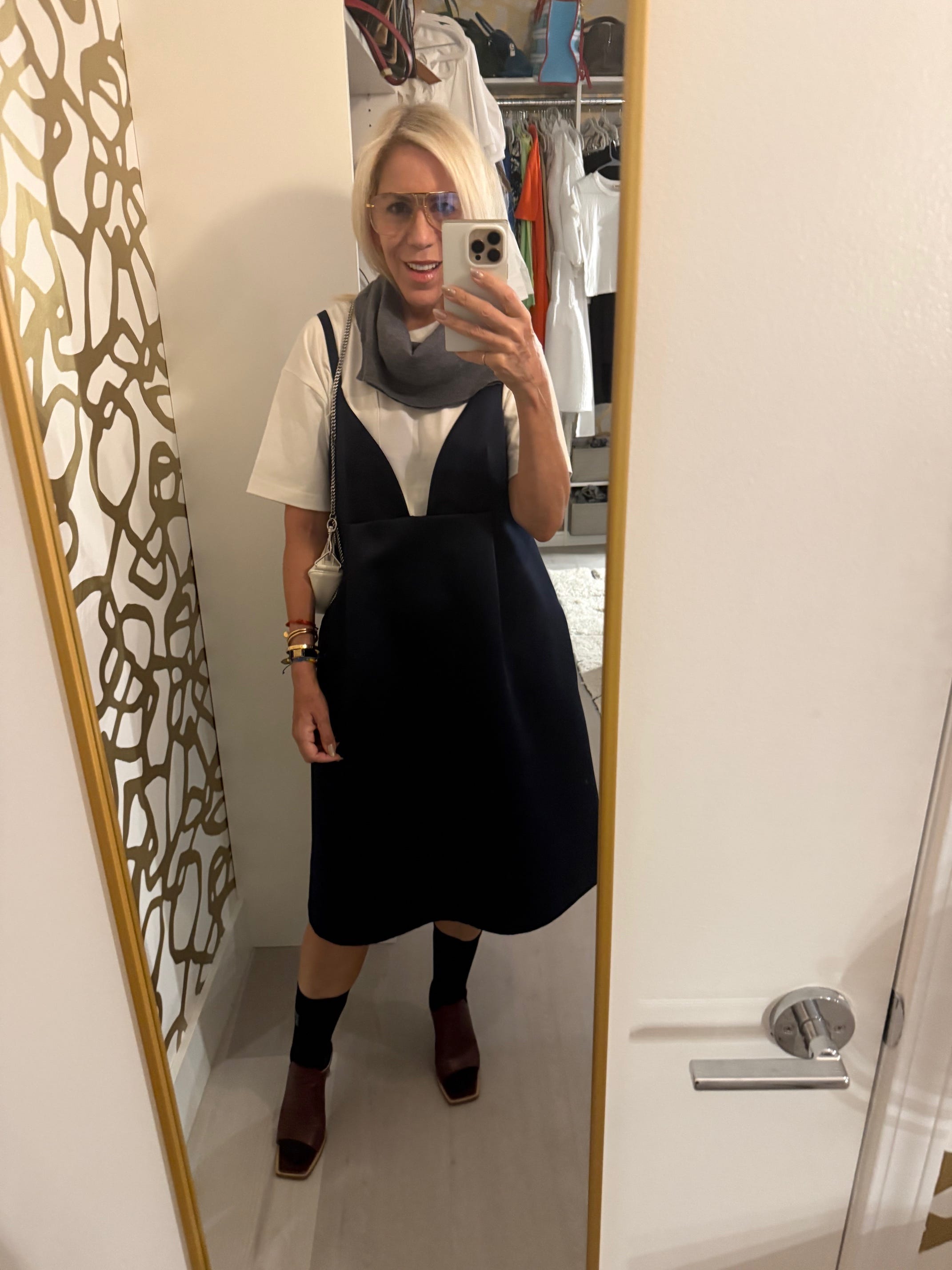 And tweak even after leaving the house. A general rec I sometimes forget. I have a look here that’s nice enough, but it didn’t feel like my mood. I could have … untucked my shirt, put my sweater around my neck, taken my socks off, rolled my sleeves up, removed my belt. Instead I cried. (I mean, that’s ok too. Just saying tho.)