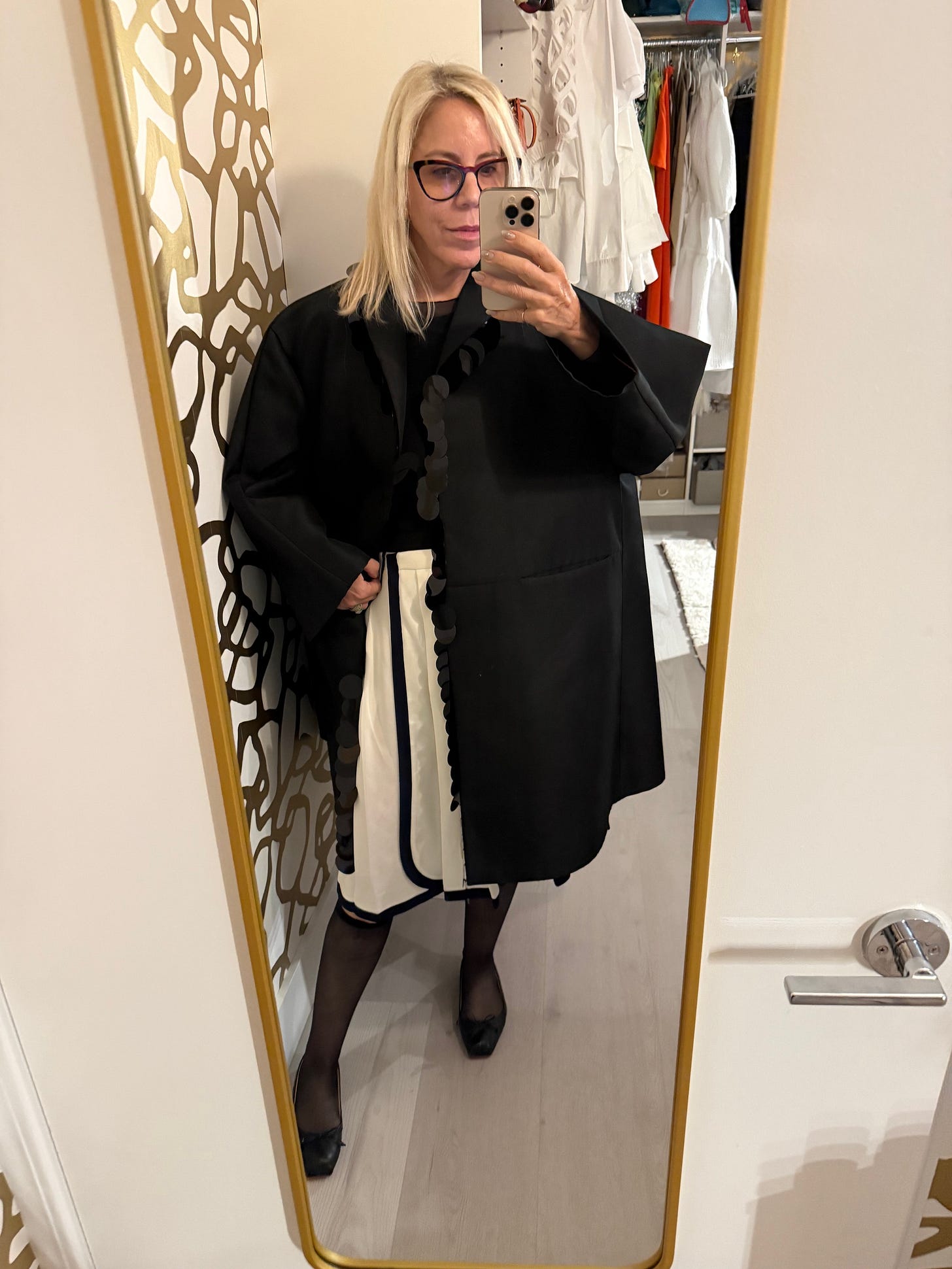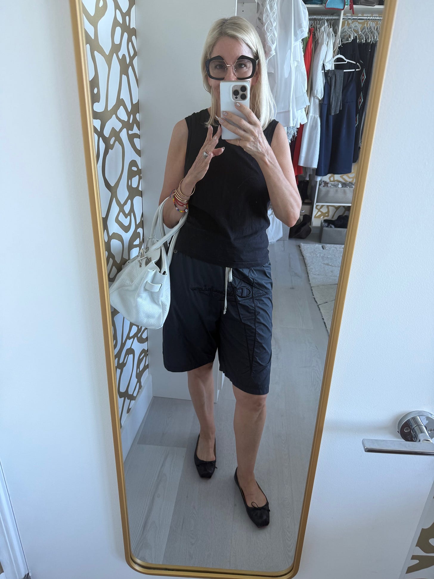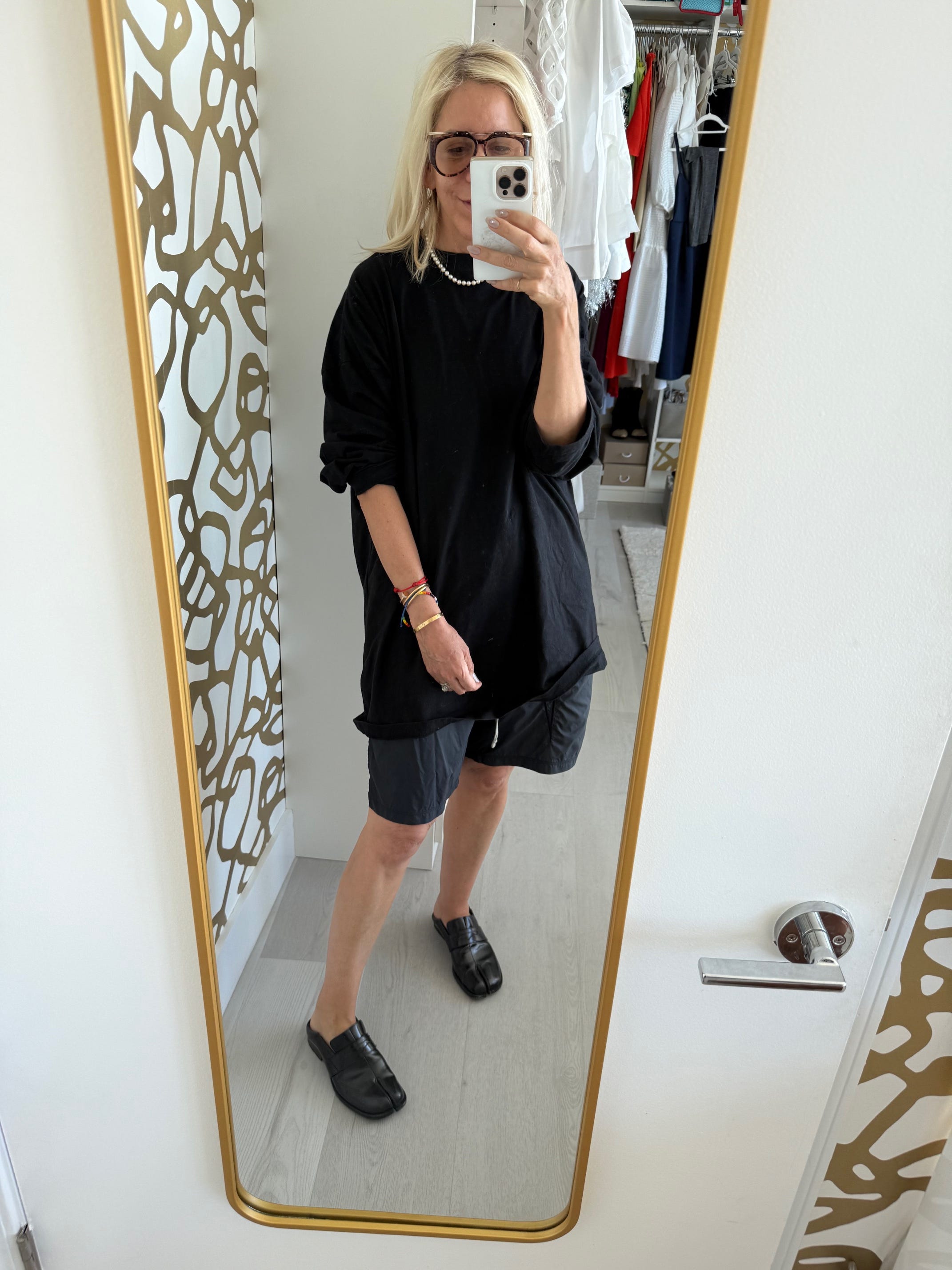 Why: I self tanned in the AM and so I then put on all black — then adjusted for the heat to go for a walk/work, not using the outfit I’d planned until the next evening.