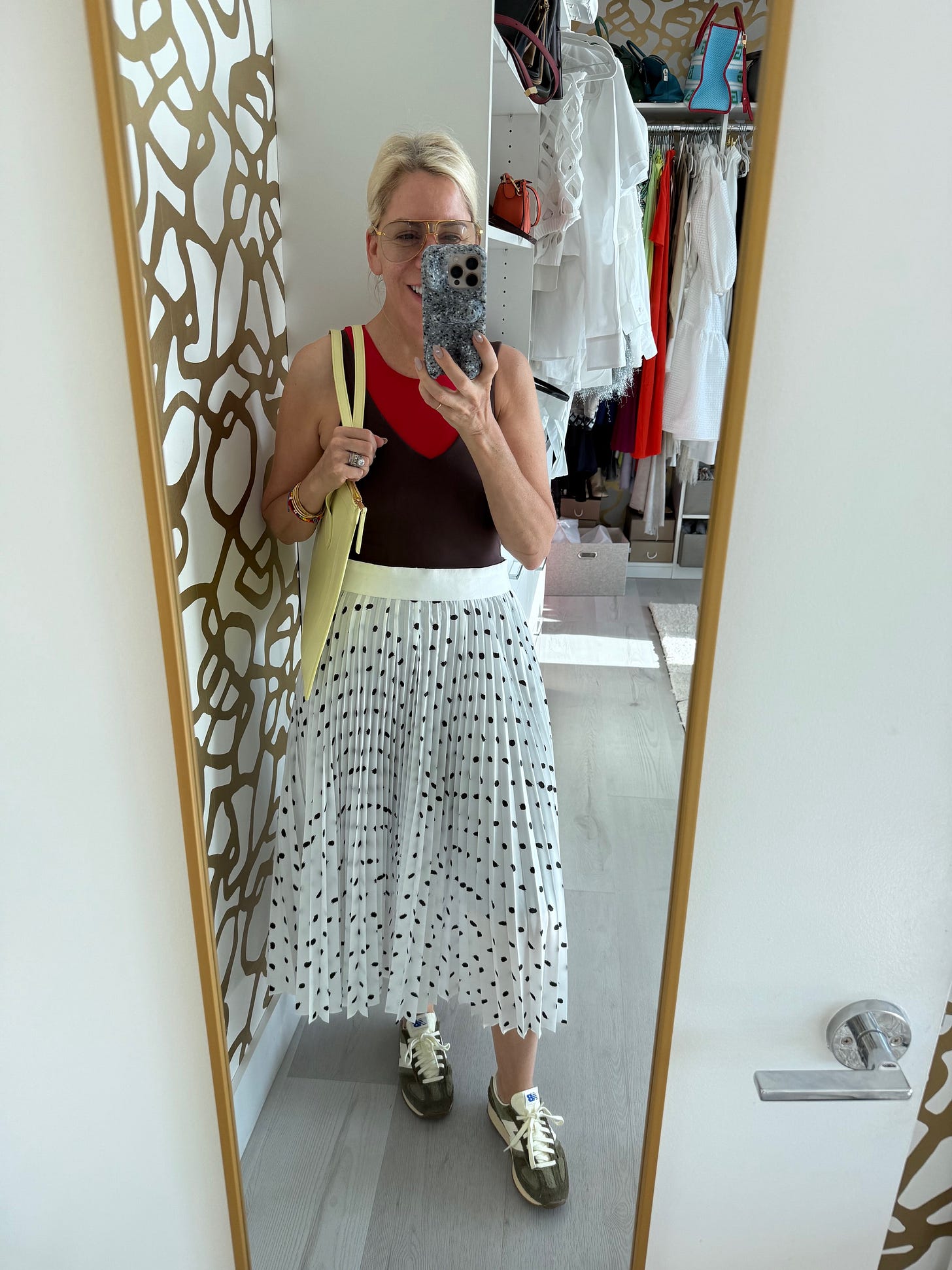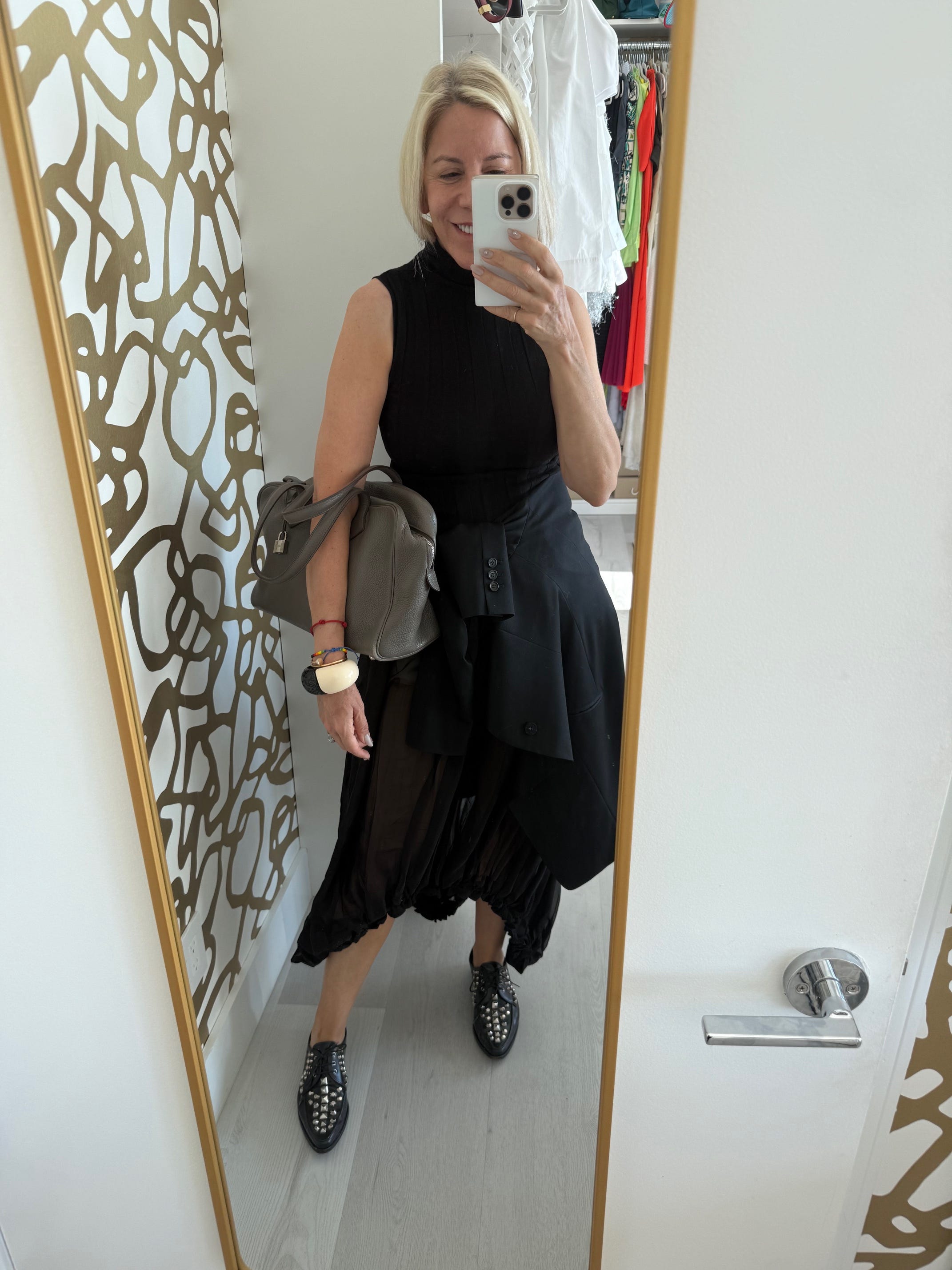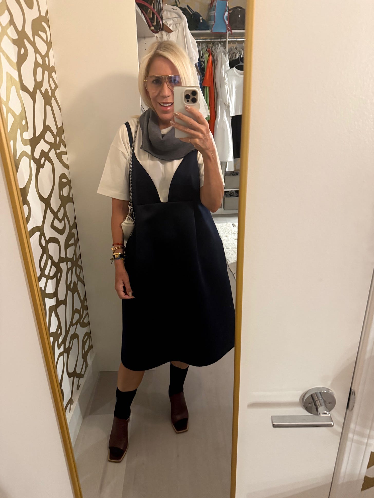 Why: I self tanned in the AM and so I then put on all black — then adjusted for the heat to go for a walk/work, not using the outfit I’d planned until the next evening.